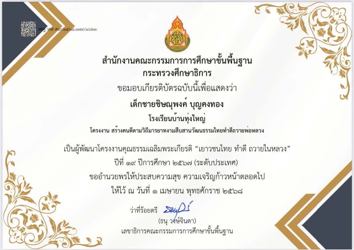 โครงงาน สร้างคนดีตามวิถีมารยาทงามสืบสานวัฒนธรรมไทยทำดีถวายพ่อหลวง