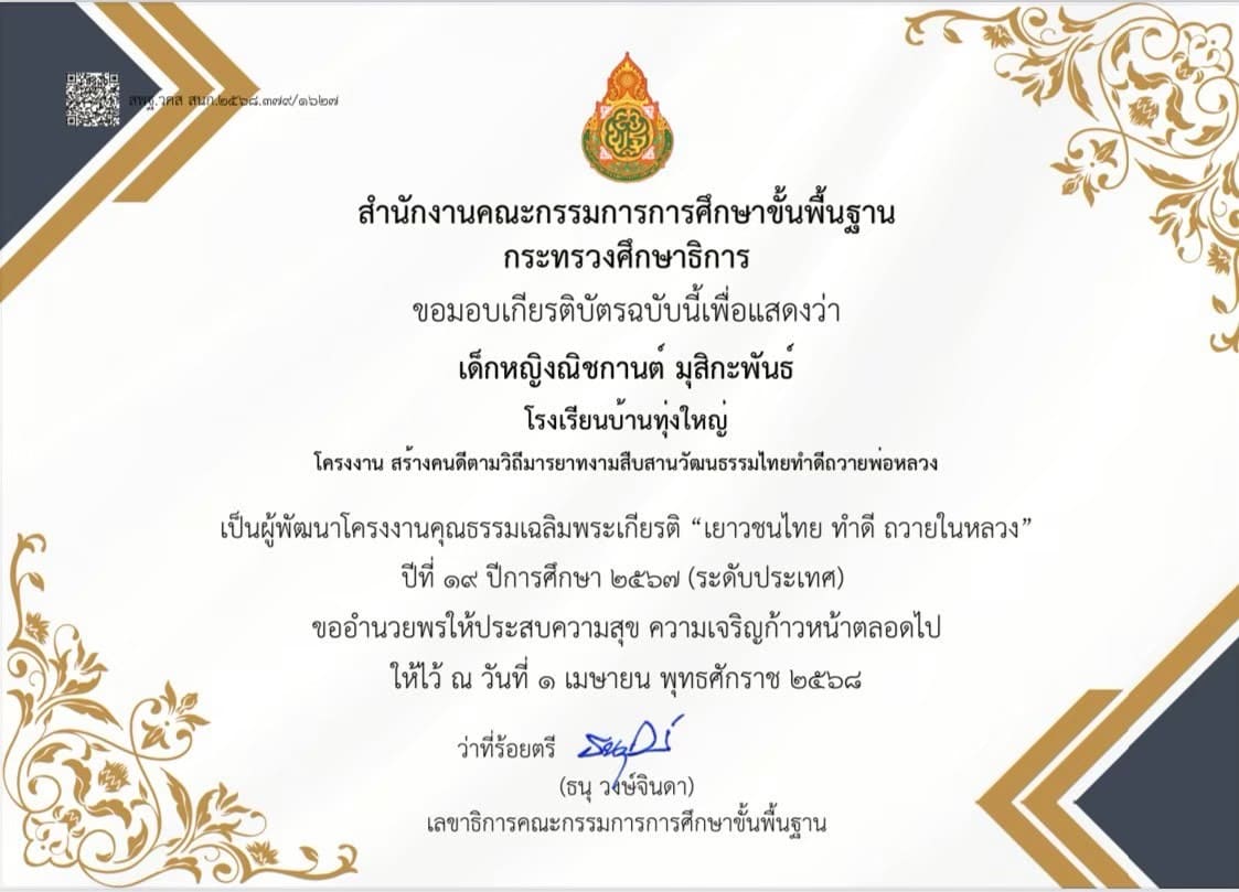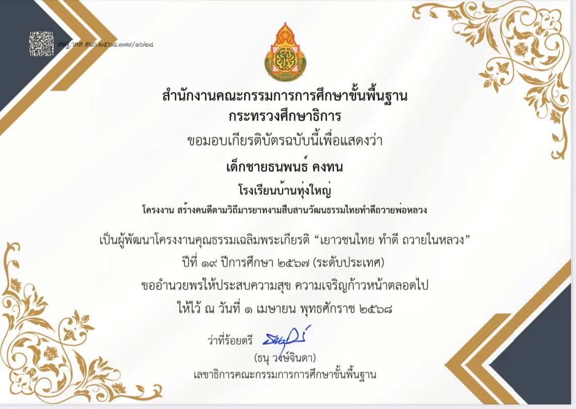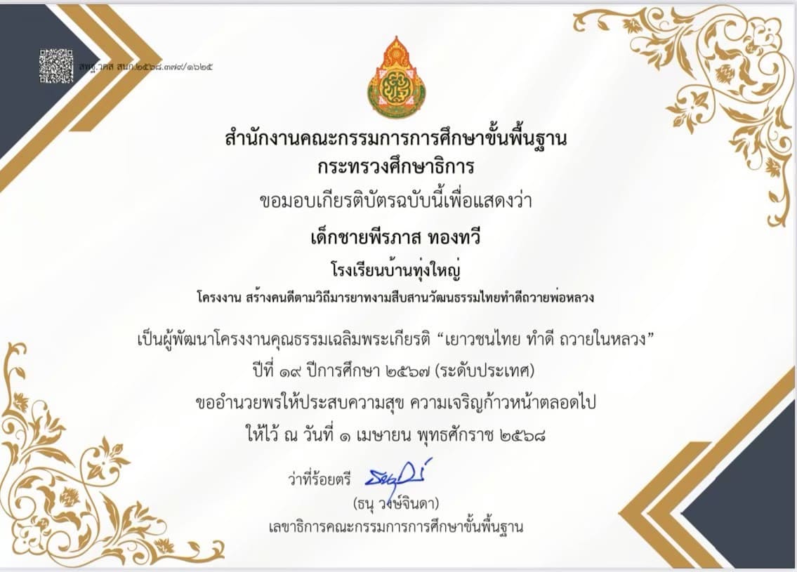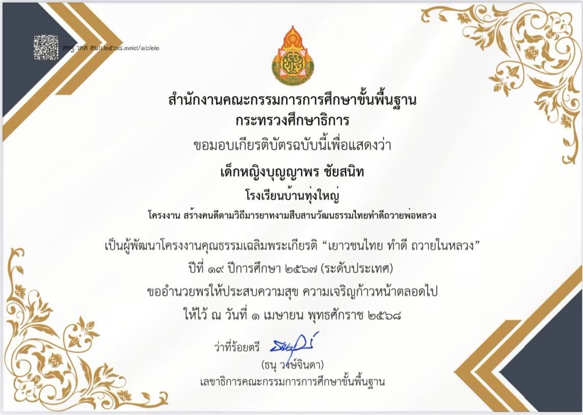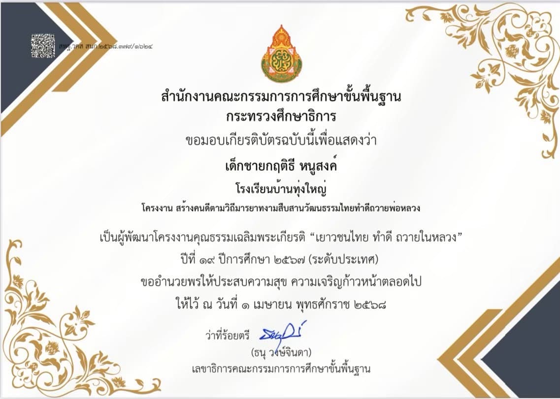 โครงงาน สร้างคนดีตามวิถีมารยาทงามสืบสานวัฒนธรรมไทยทำดีถวายพ่อหลวง