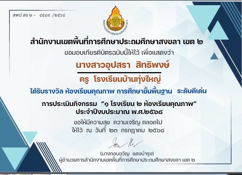 ห้องเรียนคุณภาพ ระดับดีเด่น